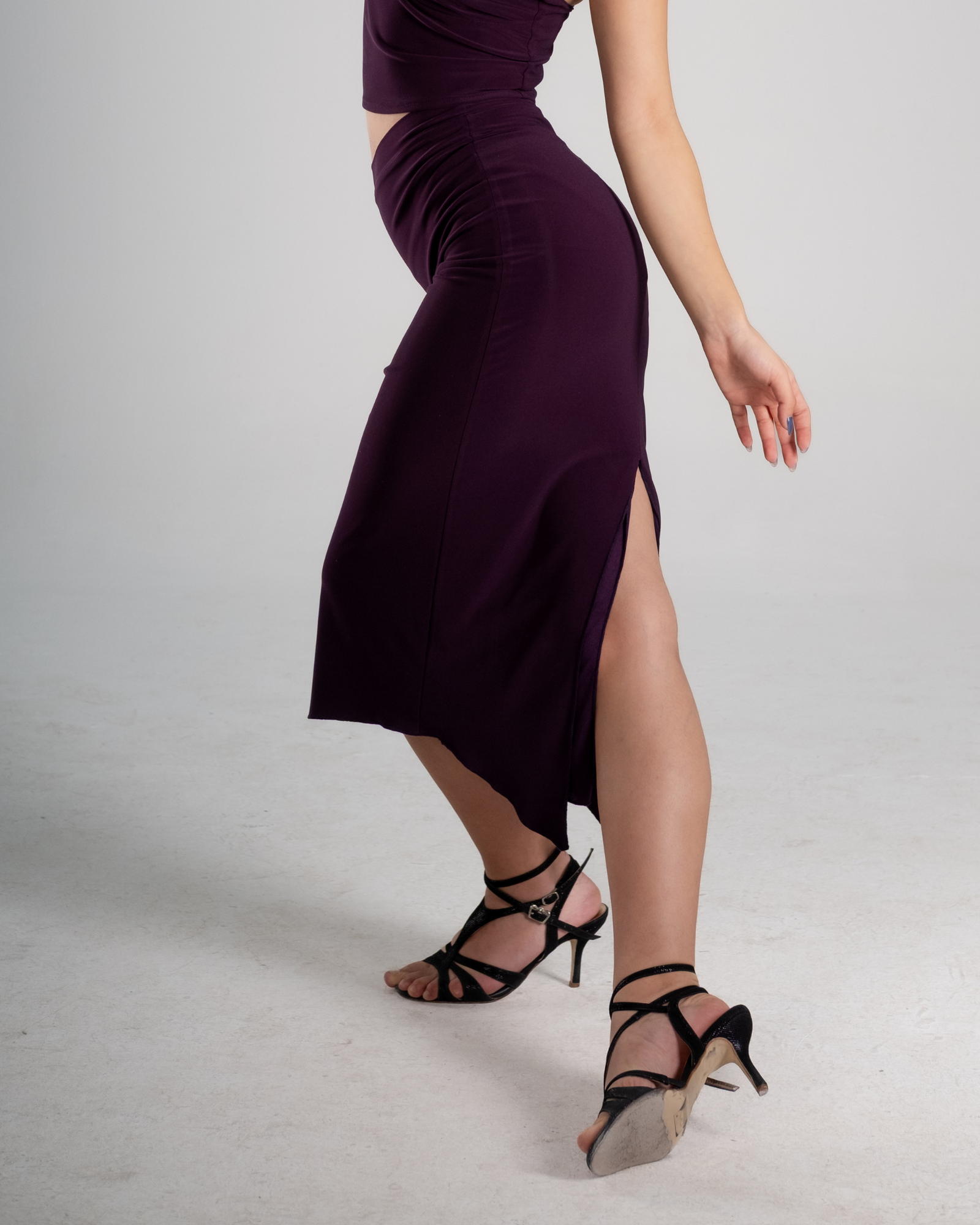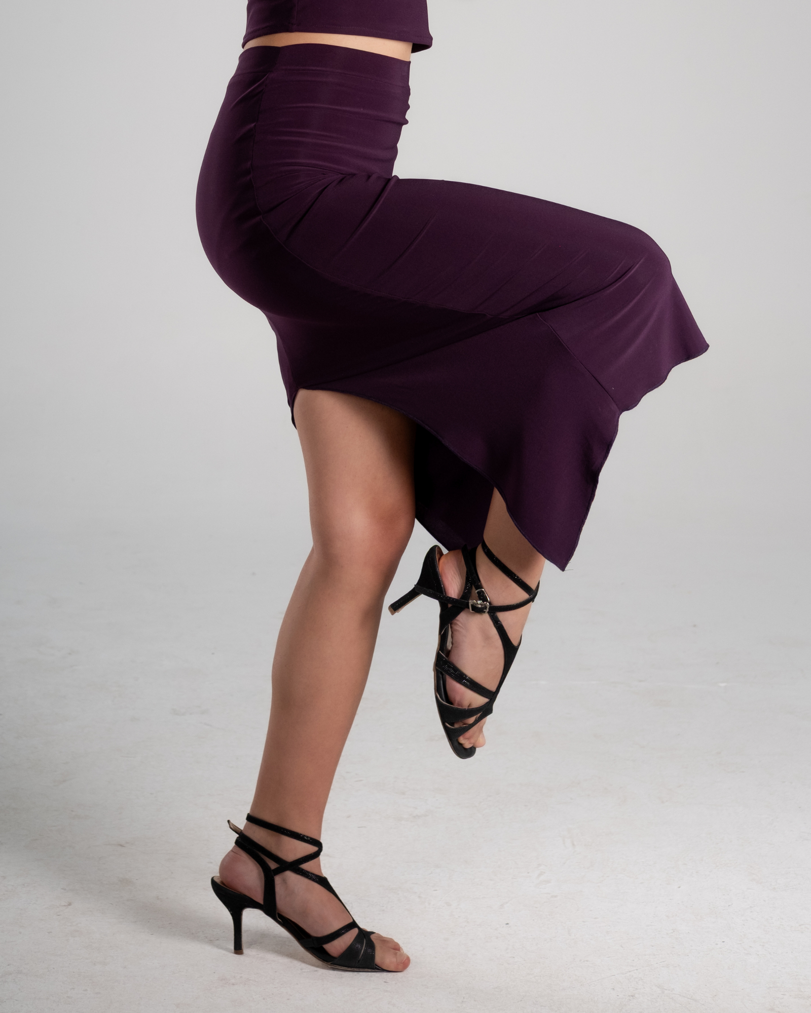 The Plum High-Waist Tango Skirt is designed for dancers who value grounded elegance, fluid movement, and a strong yet understated presence on the tango floor. The deep plum tone adds richness and depth, offering a refined alternative to classic dark shades while remaining timeless and versatile.